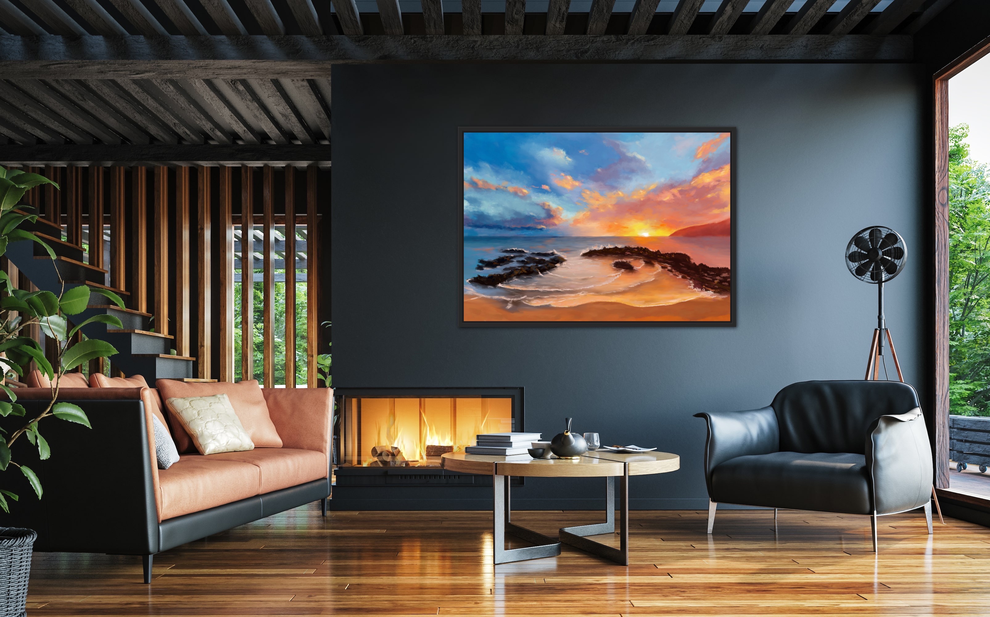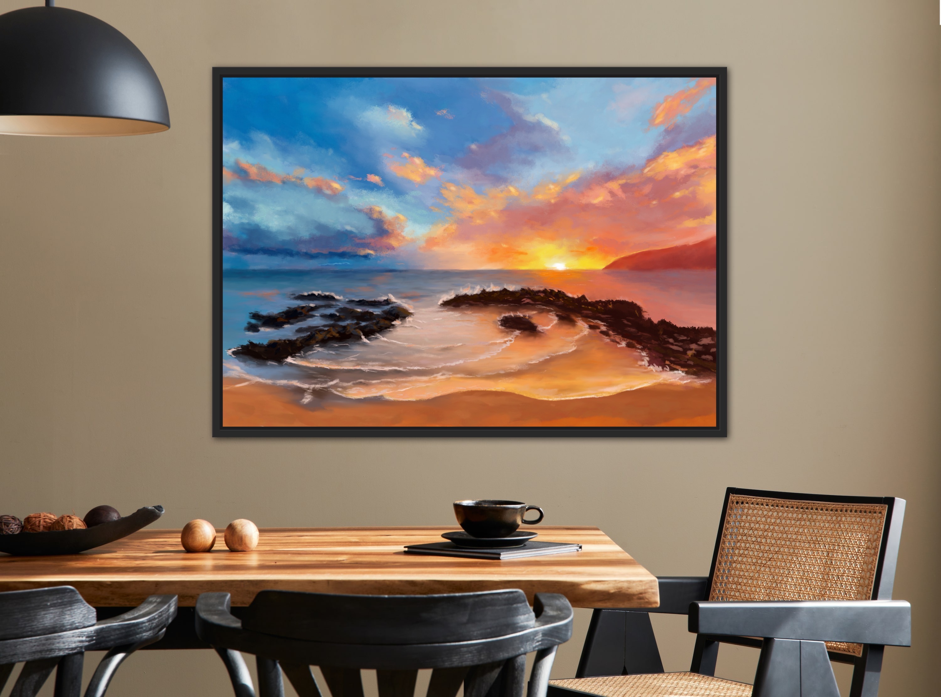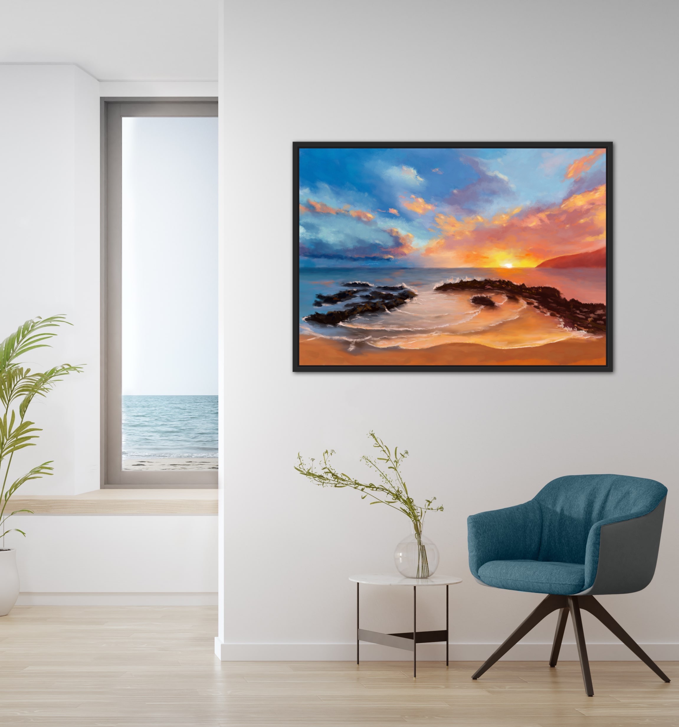 My prints come unframed if you wish to have it framed please contact me and I'll be able to work with you